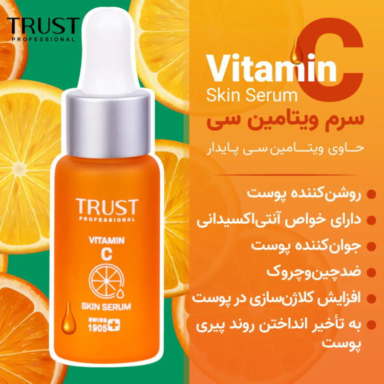 سرم ویتامین سی تراست، با ویتامین سی پایداری که داره جلوی آسیب رادیکالهای آزاد رو میگیره، ضد چین و چروکه و باعث جوانسازی پوست میشه مزایای محصول: روشنکنندگی قوی پوست اثرات آنتیاکسیدانی قوی بر پوست جوانکنندگی پوست ضد چین و چروک پوستی افزایش کلاژنسازی در پوست به تاخیر انداختن روند پیری تو پوست این محصول فاقد پارابن هست.